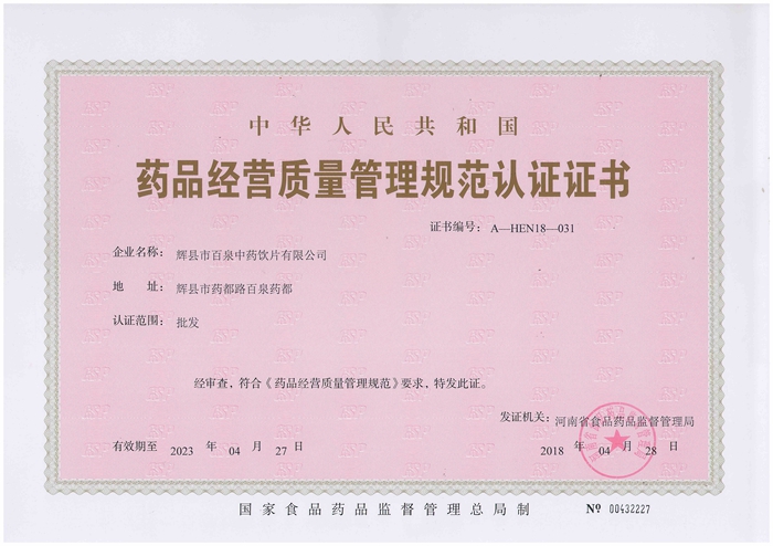 公司于2005年9月通過國家《藥品經(jīng)營質(zhì)量管理規(guī)范(GSP)》認(rèn)證,2008年1月通過國家《藥品生產(chǎn)質(zhì)量管理規(guī)范(GMP)》認(rèn)證。公司在經(jīng)營過程中嚴(yán)格遵守《藥品管理法》、《藥品生產(chǎn)質(zhì)量管理規(guī)范(GMP)》、《藥品經(jīng)營質(zhì)量管理規(guī)范(GSP)》。成為新鄉(xiāng)地區(qū)一家中藥行業(yè)雙認(rèn)證企業(yè)。